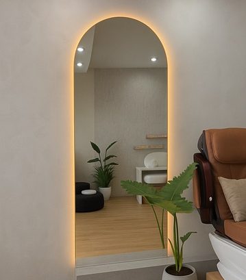 The Asymmetric Mirror features an artistic, irregular silhouette paired with a clean, contemporary finish. Its unique shape creates a visual focal point while maintaining a minimalist, high-end look—perfect for modern bathrooms, entryways, living rooms, and interior design projects.